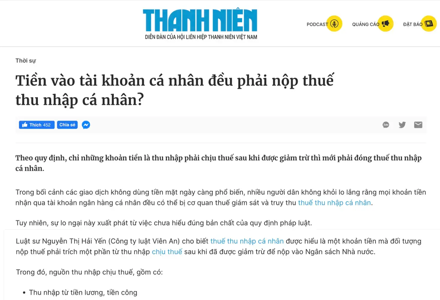 Báo Thanh Niên: “Tiền cho, tặng, hỗ trợ… không bị áp thuế và không bị cơ