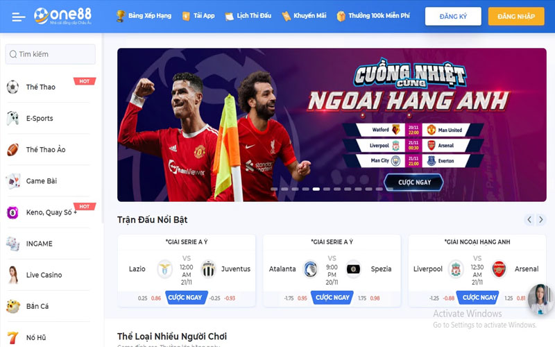 ONE88 là một nhà cái uy tín nữa được cấp phép bởi tổ chức Isle of Man. Nhà cái tặng tiền miễn phí cho anh em tân thủ khi đăng ký tài khoản cược thành công, nhà cái ONE88 có hàng trăm game cá cược đa dạng, cập nhật liên tục, luật chơi minh bạch. Tiêu biểu là cá cược thể thao, casino trực tuyến, Slot, keno…